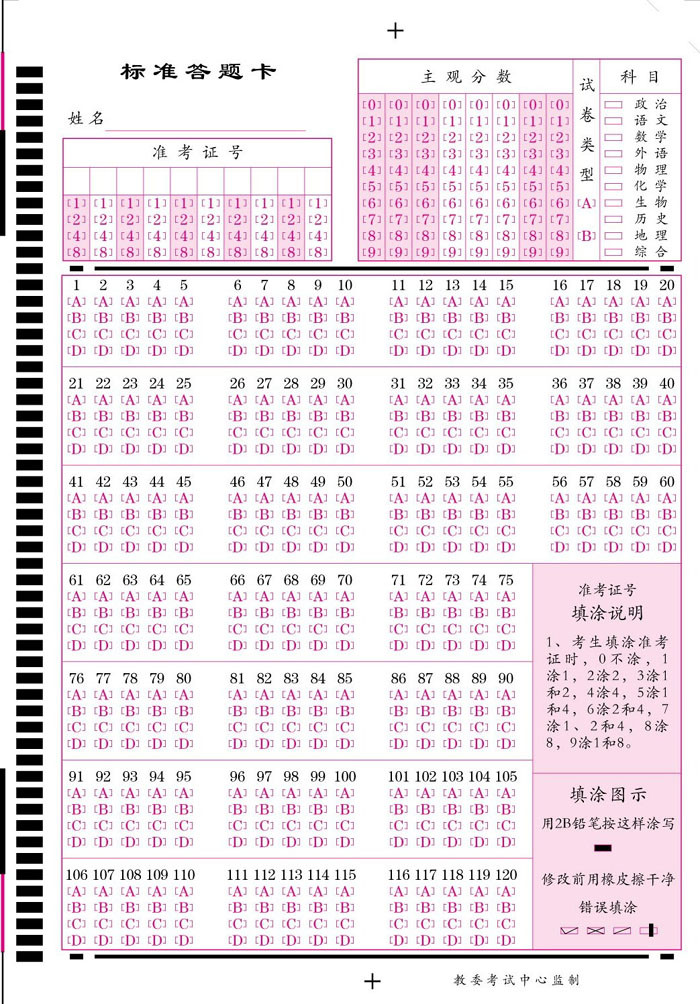 山西高考訓練答題卡