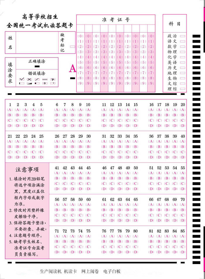 產(chǎn)品標(biāo)題:通用85題答題卡